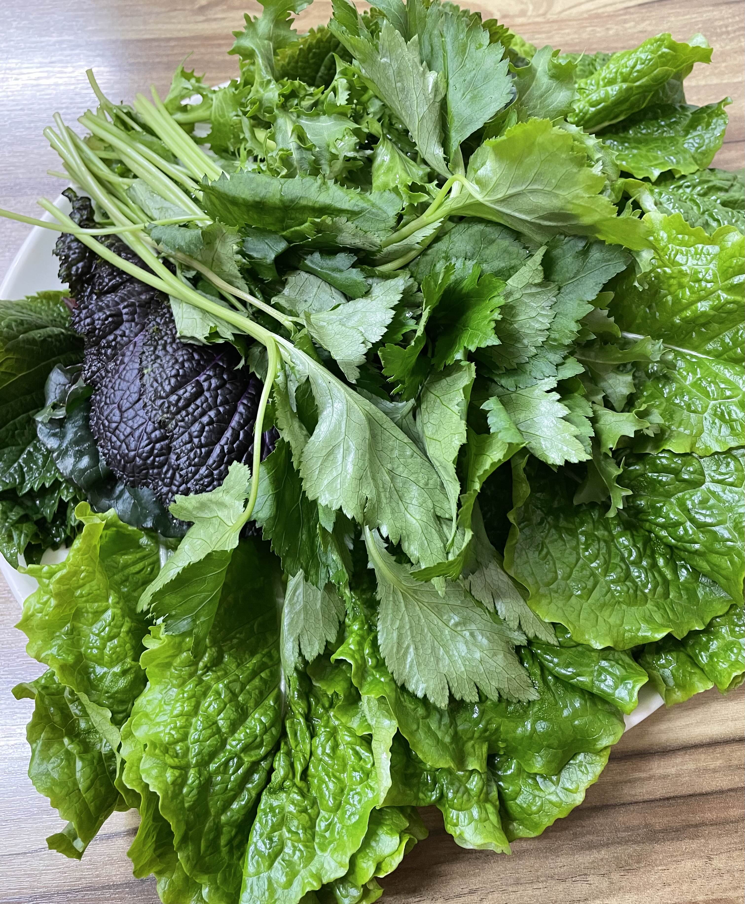 쌈을 주시는데 처음 봤을 때는 우와.. 싶어요. 왜냐하면 요즘 채소 값도 비싼데 이렇게 많이 주시는 게 놀랍더라고요. 그렇다고 맛없는 채소를 섞어서 주는 게 아니라 다 쌈다운 채소를 준비해 주십니다.